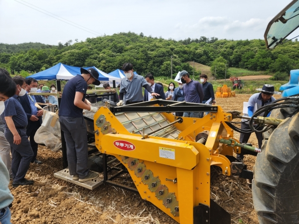 [금요저널] 충남도 농업기술원은 청양군 남양면 마룡리 논마늘 포장에서 난지형 마늘 수집형 수확기 현장 연시회를 개최했다고 16일 밝혔다.