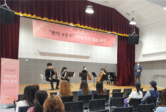 [금요저널] 아산시에 따르면 지난 14일 배방원도심 도시재생 마중물 사업으로 조성된 배방 어울림 문화센터에서 ‘현악 4중주, 이야기가 있는 공연’을 했다고 17일 밝혔다.