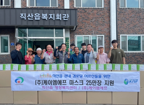 ㈜케이엠에프, 직산읍 관내 46개 경로당에 마스크 25만 장 전달
