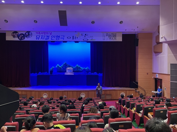[금요저널] 울진군가족센터는 6월 19일 왕피천 공원 내 문화관에서 극단 ‘아름다운 세상’ 지원으로 뮤지컬 인형극 애기똥풀 공연을 개최했다.
