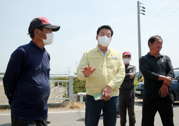 군 농기센터에 따르면, 최근 벼는 물 부족과 염도 상승으로 생육불량 및 고사 피해가 나타나고 있으며 고추와 고구마 등 밭작물에서는 칼슘 결핍 등 생리장해가 늘어나고 활착이 지연되는 등 영농피해가 확산되고 있다.