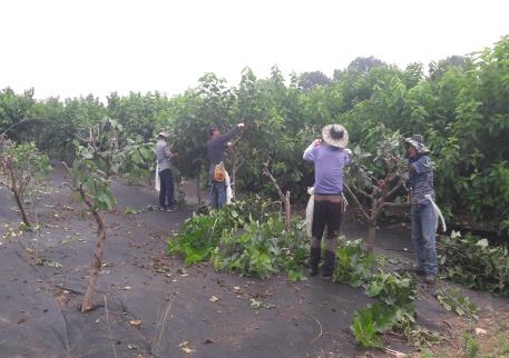 가지치기 후 뽕밭 관리는 유효가지 확보 및 생육 촉진을 위해서 과다한 질소비료 사용을 자제하고 유기물이 풍부한 퇴비를 시용하는 것이 좋다.