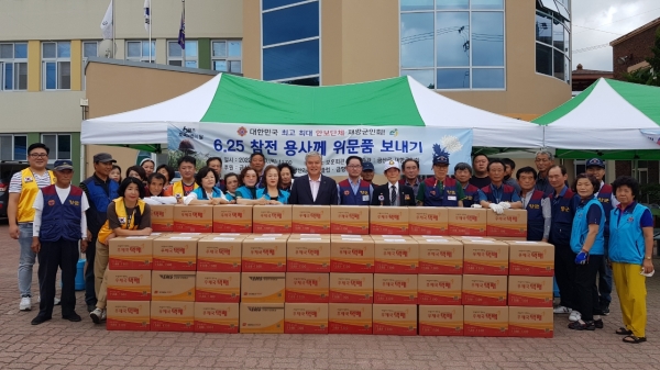 위문품은 보리쌀 5kg, 건빵, 주방세제, 여행용품, 열무김치 2.5kg 등 6종으로 구성됐으며 소형 태극기와 함께 정부 보훈 정책에 기여하기 위한 6.25전쟁 무공훈장 주인공 찾기 안내문도 동봉했다.