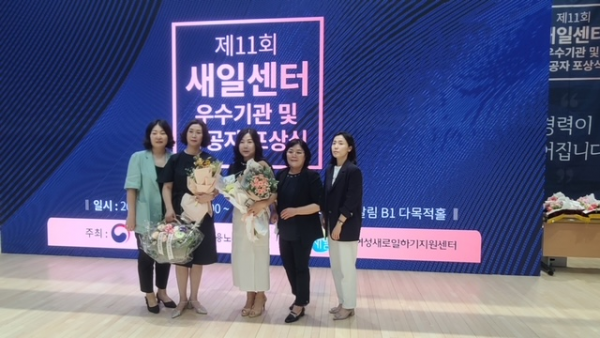 지난 23일 서울 스페이스살림에서 개최된 ‘제11회 새일센터 우수기관 및 유공자 포상식’에서는 현장 맞춤형 실무중심 직업훈련 실시, 활발한 홍보활동을 통한 신규 구인처 발굴실적 향상 등의 성과를 바탕으로 서비스영역 우수기관상, 새일센터 종사자상 등에 상을 수여했다.