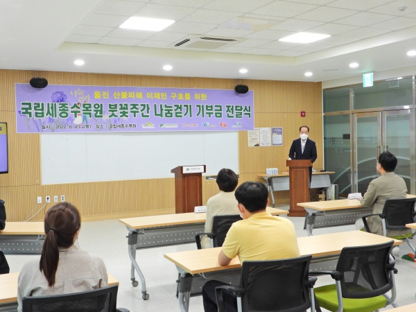지난 24일에는 국립세종수목원에서 붓꽃주간 나눔걷기 기부금 전달식이 진행됐다.