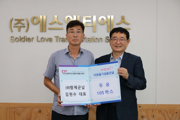[금요저널] 동두천시 형제군납에서는 지난 27일 동두천시종합자원봉사센터를 통해 두드림 장애인학교와 동두천시 장애인보호작업장에 음료 105박스를 전달했다.