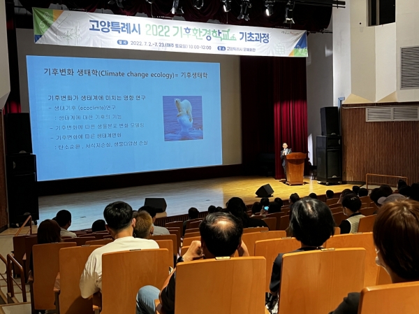 [금요저널] 고양시는 지난 2일 130여명의 교육생이 참여한 가운데 ‘2022년 고양특례시 기후환경학교’ 기초과정이 고양시 문예회관에서 개강했다고 밝혔다.