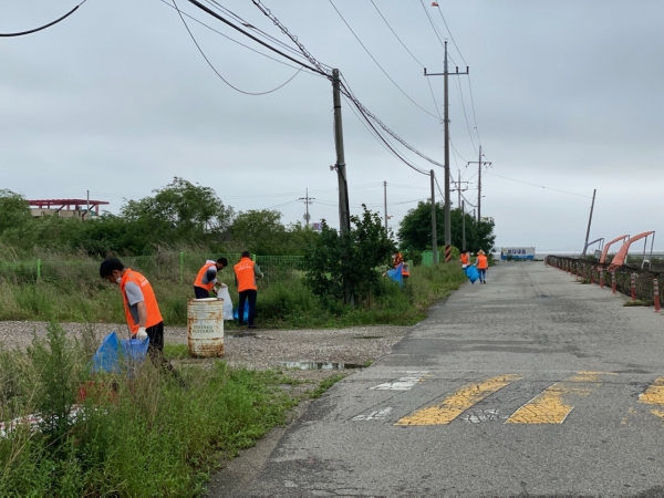 이날 회원 15명은 비바람이 몰아치는 궂은 날씨에도 불구하고 황산도 인근과 나들길에 적치된 쓰레기를 집중 수거했다.