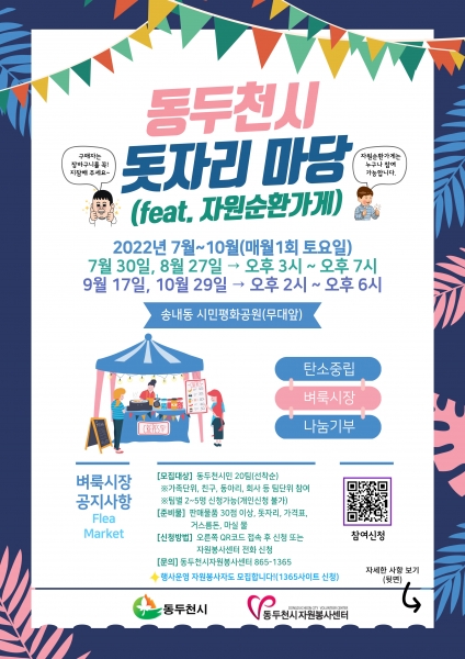 [금요저널] 동두천시종합자원봉사센터는 오는 7월 30일 오후 3시부터 7시까지 송내동 시민평화공원에서 ‘2022 동두천시 돗자리마당’을 개최키로 하고 판매 참여자 20팀을 모집한다.