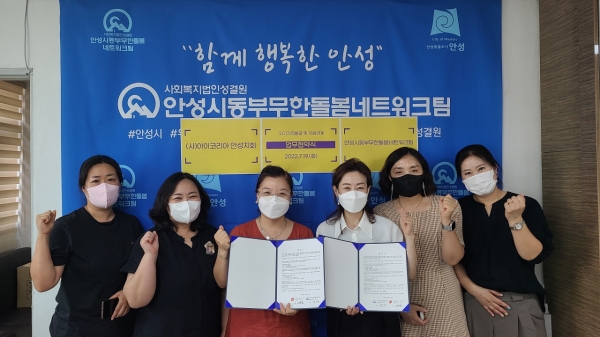 [금요저널] 안성시동부무한돌봄네트워크팀이 지난 19일 아이코리아 안성지회와 업무협약을 맺었다.