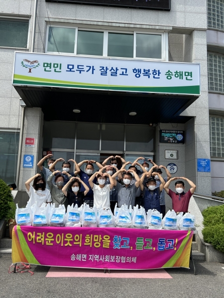 [금요저널] 강화군 송해면 지역사회보장협의체는 지난 15일 초복을 맞아 독거 어르신들에게 음식을 전달했다.