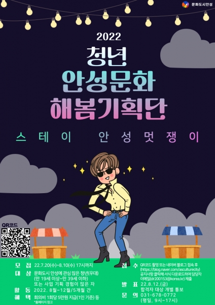 [금요저널] 안성시는 문화도시 조성과정에서 청년 위주로 사업을 기획하고 실행할 수 있는 의사결정 주체인 ‘청년 안성문화해봄기획단 스테이 안성멋쟁이’의 참여신청을 지난 20일부터 오는 8월 10일 오후 5시까지 접수한다.