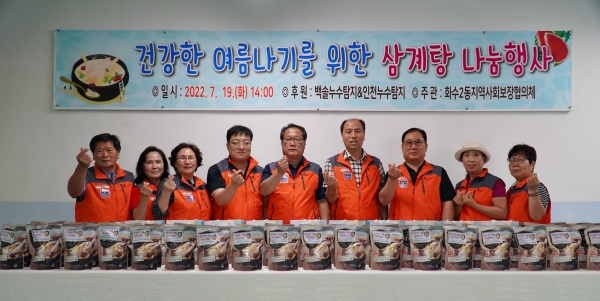 [금요저널] 인천 동구 화수2동 지역사회보장협의체는 지난 19일 여름 건강식 삼계탕 밀키트 나눔을 진행했다.