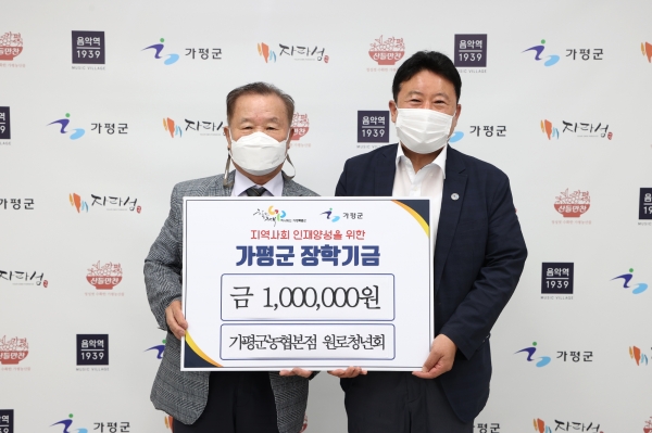 가평군농협본점 원로청년회는 2019년에도 100만원을 장학금으로 기탁한 이력이 있다.