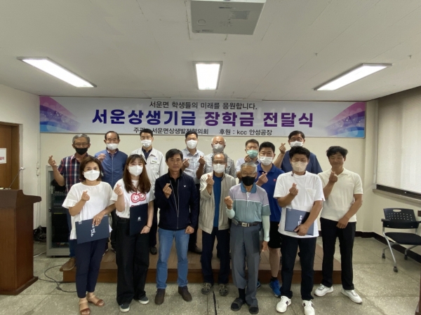 윤종찬 서운면장은 “상생장학금으로 지역 학생들이 꿈을 펼칠 수 있는 계기를 만들어 주신 서운면 상생발전협의회에 정말 감사드린다”고 말했다.