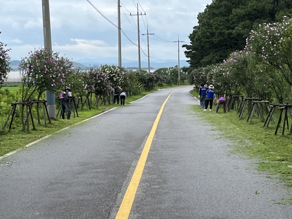 이날 회원 20여명은 약 3km 구간 도로변에 자라난 잡초를 제거하고 철망에 얽힌 덩굴을 제거하는 등 도로변 환경정비에 앞장섰다.