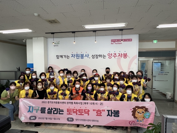 [금요저널] 양주시자원봉사센터는 지난 19일과 22일 총 2회에 걸쳐 60여명의 봉사자들이 참여한‘지구를 살리는 토닥토닥 효자봉’제작활동을 진행했다.