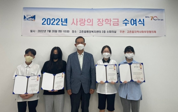 [금요저널] 김포시 고촌읍 지역사회보장협의체는 지난 7월 26일 “사랑의 장학금” 수여식을 개최했다고 밝혔다.