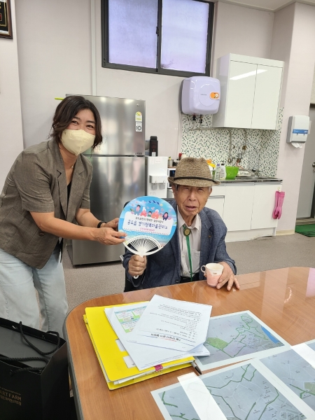운영시간은 오전 9시부터 오후 5시까지이며 무더위쉼터를 방문하는 시민들에게 경기행복마을관리소 추진사업 홍보 부채를 나눠주기도 한다.