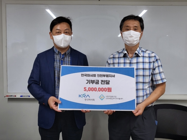 부평구 인천부평남부지역자활센터, 한국마사회 인천부평지사로부터 기부금 500만원 전달 받아