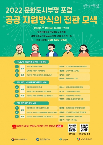 [금요저널] 부평구문화도시센터가 오는 29일 부평생활문화센터 다목적 홀에서 ‘2022년 문화도시부평 포럼’을 진행한다.