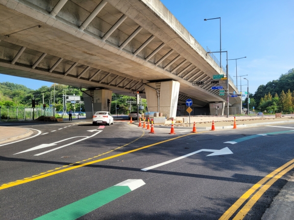 또한 과속단속 카메라, 차선 유도표지, 보행로 방호울타리 등을 확충해 안전사고를 예방하는 동시에, 시설 개선에 따른 원활한 차량 흐름을 위해 신호현시 변경 등 신호체계도 정비했다.
