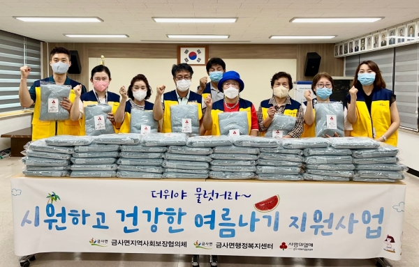[금요저널] 금사면 지역사회보장협의체가 27일 취약계층 54가구를 대상으로 시원한 여름나기를 위한 여름이불 지원 사업을 실시했다.