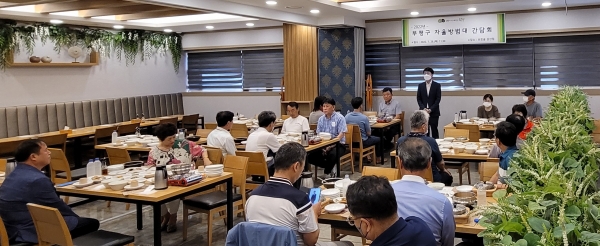 [금요저널] 부평구는 지난 28일 보릿골 삼산점에서 지역 내 자율방범대 16곳과 간담회를 진행했다.