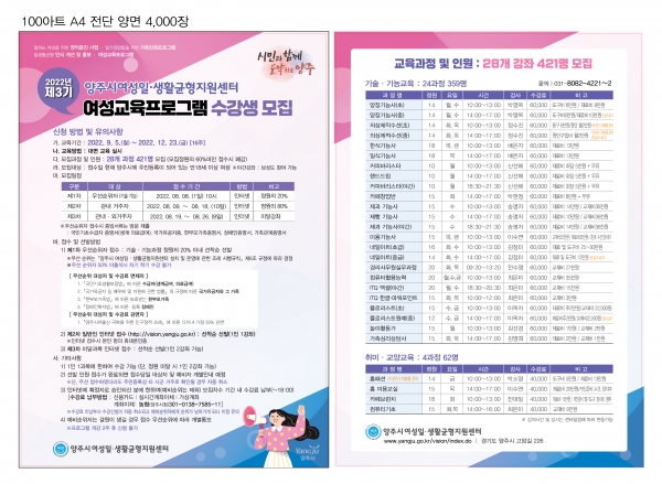 양주시여성일·생활균형지원센터, 2022년 제3기 여성교육프로그램 수강생 모집