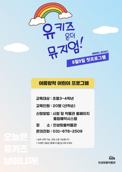 [금요저널] 안성맞춤박물관은 오는 8월 9일부터 11일까지 여름방학을 맞아 지역사회 초등학생을 위한 교육프로그램 ‘유키즈 온더 뮤지엄’을 운영한다.
