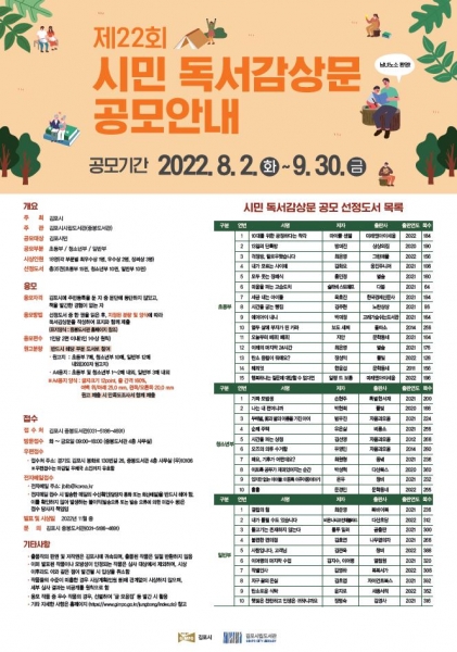 [금요저널] 김포시는 시민의 독서 의욕 고취 및 자율적인 시민독서문화 형성을 위해 제22회 시민독서감상문을 공모를 실시한다.