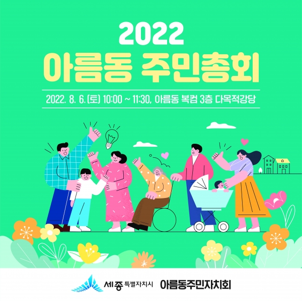 김현일 주민자치회장은 “주민총회는 주민 스스로 발굴한 마을의제를 더많은 주민과 함께 결정하는 참여와 공론의 장”이라며 “올해에는 주민들이 즐길 수 있는 공연과 함께 진행하는 만큼 아름동 주민들의 많은 관심과 참여를 부탁드린다”고 말했다.