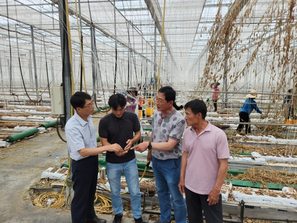 강진의 파프리카 부산물을 수거해 TMR 배합사료 중 파프리카 함량별 영양 분석을 통해 최적의 배합비로 농가에 제공할 계획이라고 전했다.