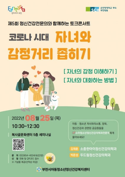 [금요저널] 부천시는 부천시아동청소년정신건강복지센터와 함께 ‘제5회 정신건강전문의와 함께하는 토크콘서트’를 실시한다.