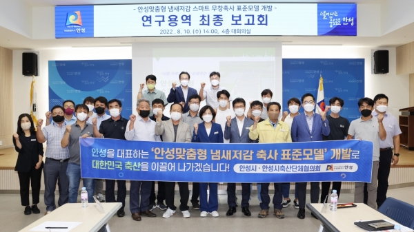 [금요저널]안성시는 지난 10일 시청 4층 대회의실에서 ‘안성맞춤형 냄새저감 스마트 무창축사 표준모델’ 개발 용역 최종보고회를 개최했다.