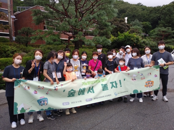 [금요저널] 2022년 8월 11일 양주시 장애인종합복지관 기능향상지원팀에서는 발달장애 아동, 청소년, 성인 이용인 9가정, 22여명이 참석한 가운데 새마을운동중앙회에서 주최하는 ‘숲에서 놀자-숲 체험 캠프’를 진행했다.