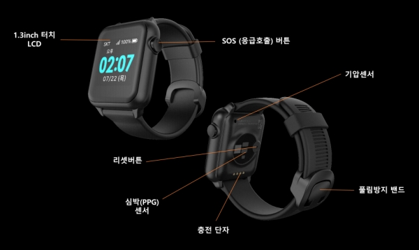 이번에 지원하는 배회감지기는 손목시계 형태로 제작됐으며 실시간 위치 알림을 비롯해 안심존 이탈 시 알림, SOS호출, 낙상감지 기능을 탑재하고 있다.