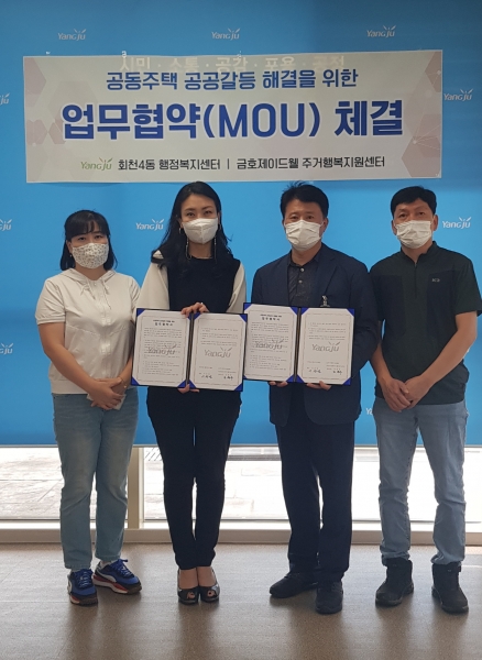 양주시 회천4동, 양주옥정신도시 금호산업제이드웰NHF 주거행정복지센터와‘공공주택 공공갈등해결’업무협약 체결