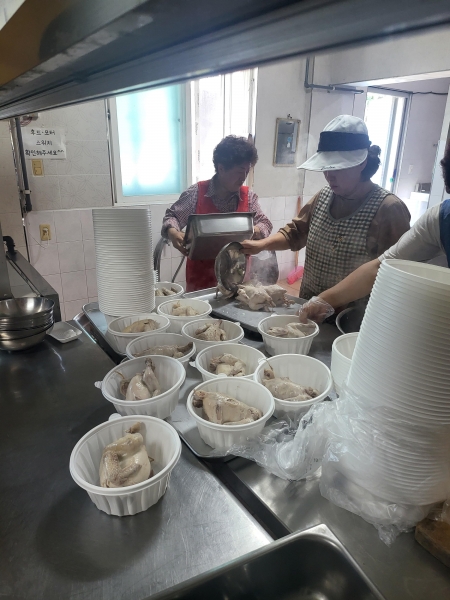 [금요저널] 율면 주민 자치회는는 복지 분과사업의 일환으로 취약계층인 기초생활수급자와 고령자들을 대상으로 ‘삼계탕 나눔’사업을 진행했다.