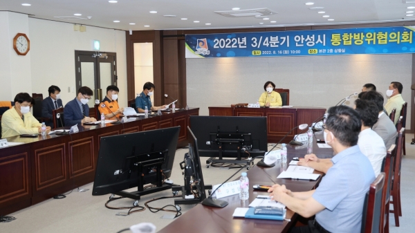 [금요저널] 안성시는 지난 16일 시청 2층 상황실에서 김보라 시장과 안성시 지역안보책임자들이 참석한 가운데 ‘2022년 3분기 통합방위협의회’를 개최했다.