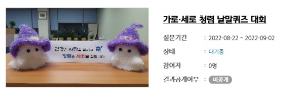 이번 ‘청렴 퀴즈 대회’는 다소 멀게 느껴질 수 있는 청렴이라는 주제에 시민들이 더욱 친근하게 다가갈 기회를 제공하기 위해 마련됐다.