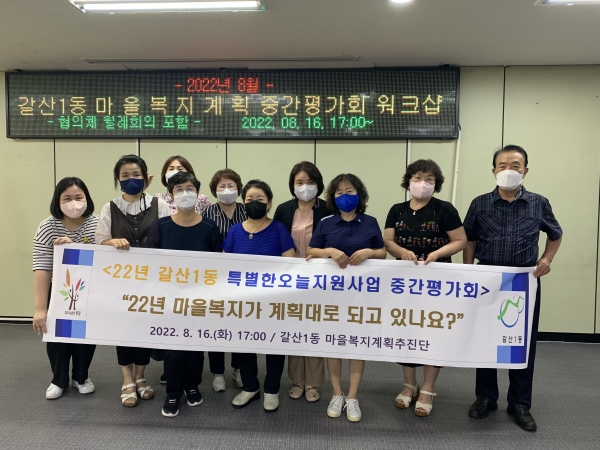 [금요저널] 부평구 갈산1동은 지난 16일 동 행정복지센터 회의실에서 2022년 마을복지계획인 ‘특별한 오늘 지원사업’의 중간평가회 워크숍을 진행했다.