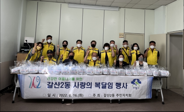 [금요저널] 부평구 갈산2동 주민자치회는 지난 16일 말복을 맞아 삼계탕을 직접 전달하는 복달임 행사를 진행했다.