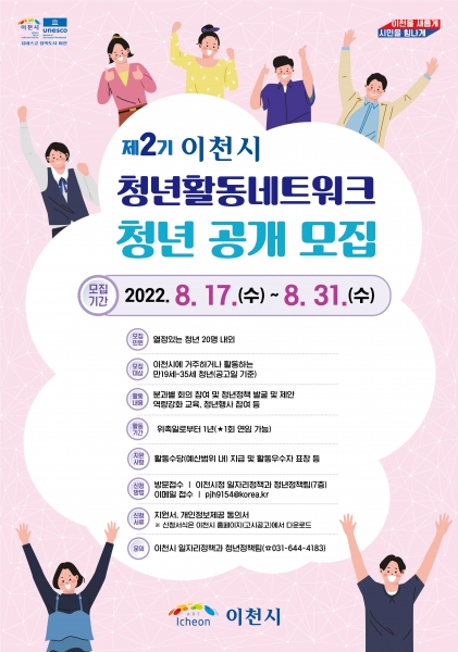 이천시, 제2기 이천시 청년활동네트워크 공개 모집