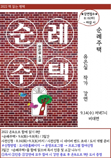 평택시가 선정한 올해의 책 ‘순례주택’은 유은실 작가의 청소년 소설로 빌라촌과 아파트 주민을 구분하는 ‘어른스럽지 않은 어른’들의 이분법에 대해 중3 오수림의 유쾌한 반란을 그린 작품이다.