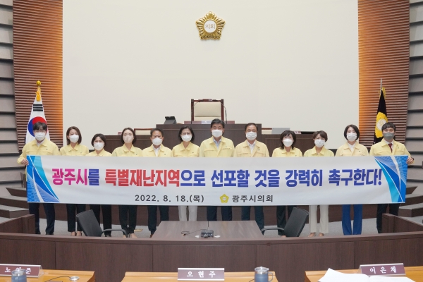 이번 광주시 특별재난지역 선포 촉구 건의안은 18일 본회의 의결 즉시 특별재난지역 선포를 담당하는 행정안전부 등 관계 부처와 국회로 전달됐다.