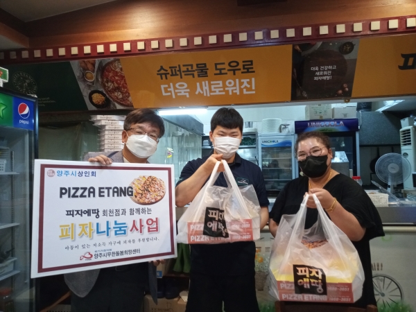[금요저널] 양주시 상인회에 소속된 업체인 피자에땅 회천점은 양주시무한돌봄희망센터를 통해 저소득 아동가구의 결식 예방 및 식생활 개선을 위해 이번달부터 매달 피자 4판을 후원하기로 했다.