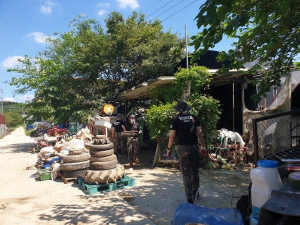 매송면 51사단 군 장병 70여명은 지난 11일부터 일주일이 넘게 화성시 매송면 일대 피해 지역을 방문해 침수된 농막과 무너진 비닐하우스 내 농자재 정리, 빗물 배수작업, 각종 쓰레기 수거 및 진흙 청소 등을 돕고 있다.