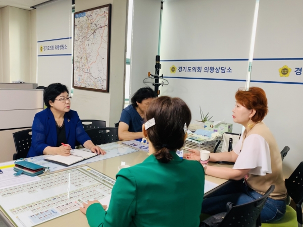 [금요저널] 경기도의회 김옥순의원이 19일 의왕상담소에서 지역 가수 및 노래 강사들의 애로사항을 청취했다.
