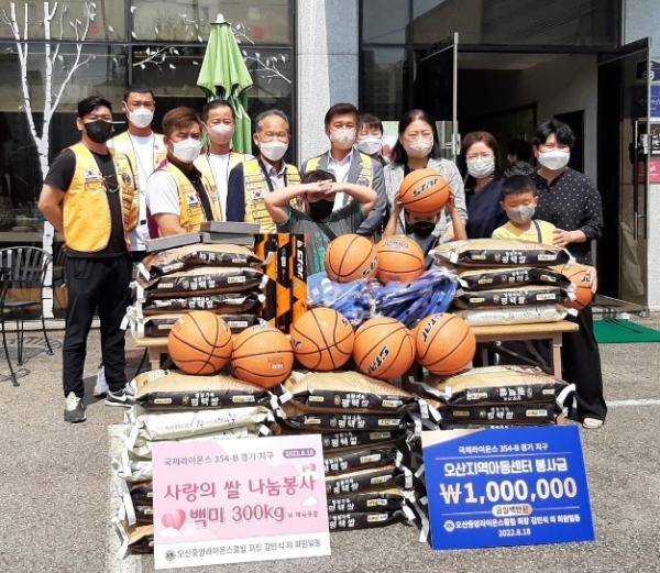 [금요저널] 오산시 지역아동센터 연합회에 오산중앙라이온스클럽이 아동센터를 이용하는 어린이들을 위해 백미 300kg, 스포츠용품, 소정의 후원금을 전달했다.